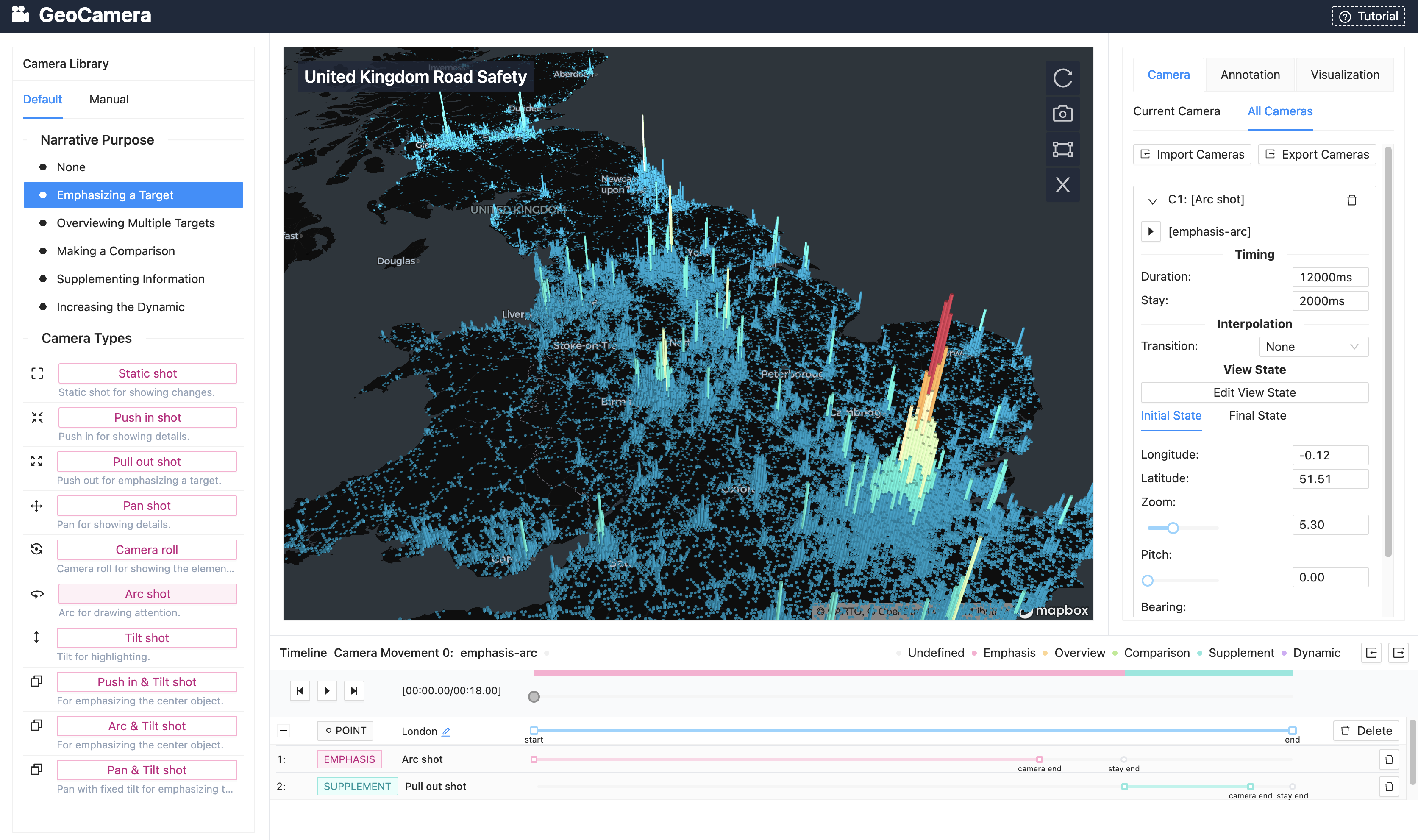 GeoCamera: Telling Stories in Geographic Visualizations with Camera Movements